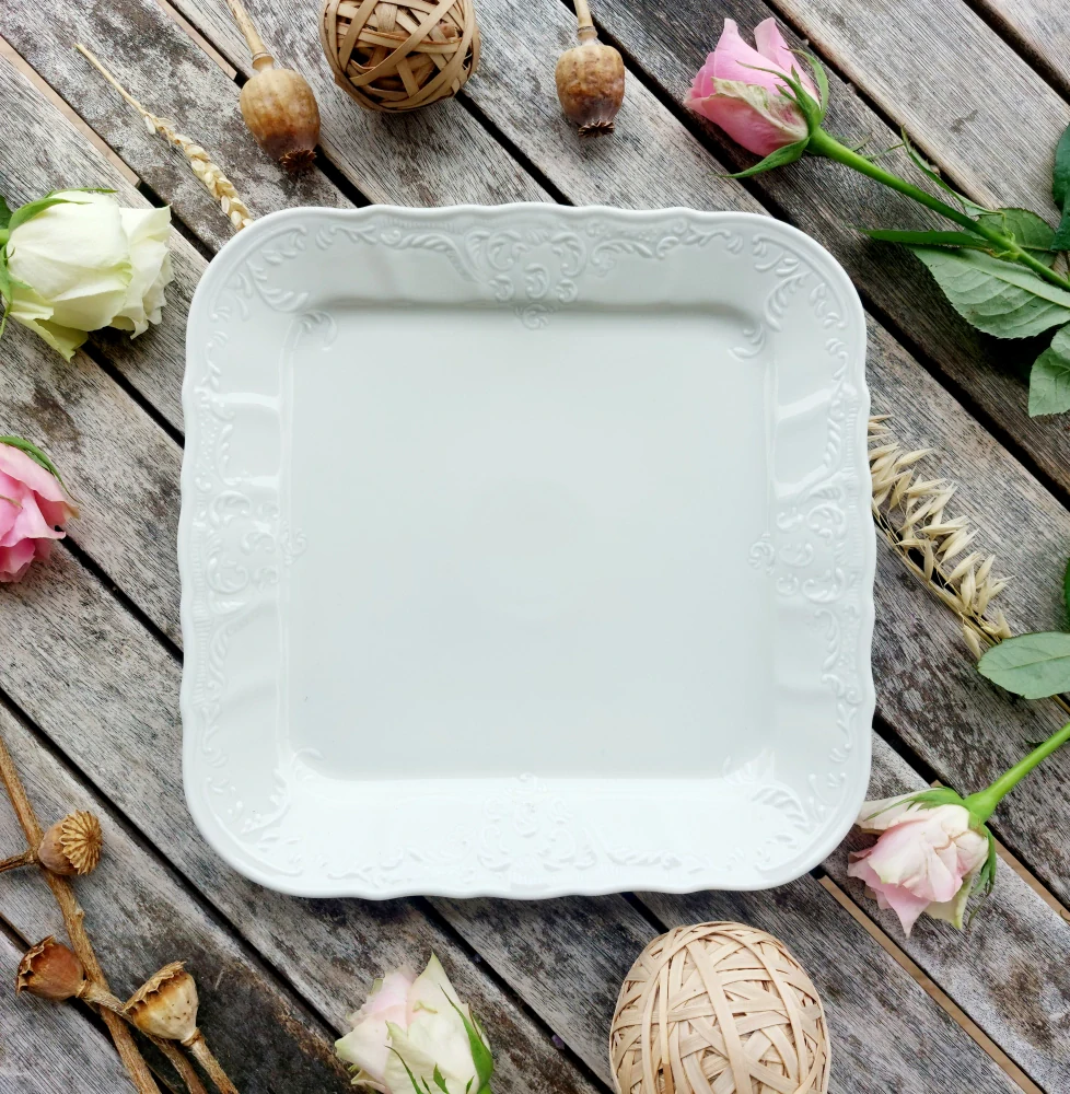 Elegantní servírovací podnos čtyřhranný v barvě slonové kosti od největšího českého výrobce porcelánu Thun 1794. Kolekce Bernadotte je snad nejznámější a nejpopulárnější reliéfní porcelánový soubor, který se v Lesově vyrábí od 60tých let 20. století. Důkazem je, že je kolekce velmi rozsáhlá a její sortiment se neustále rozšiřuje dle požadavků trhu. Tento výrobek nemá spodní značku výrobce.