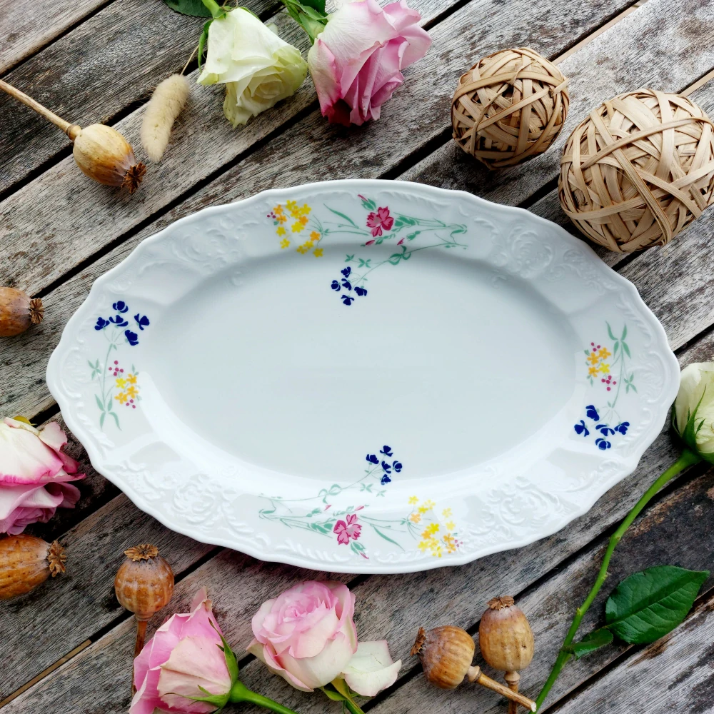 Praktická oválná mísa / podnos v bílé barvě s květinovým dekorem od největšího českého výrobce porcelánu Thun 1794. Kolekce Bernadotte je snad nejznámější a nejpopulárnější reliéfní porcelánový soubor, který se v Lesově vyrábí od 60tých let 20. století. Důkazem je, že je kolekce velmi rozsáhlá a její sortiment se neustále rozšiřuje dle požadavků trhu.