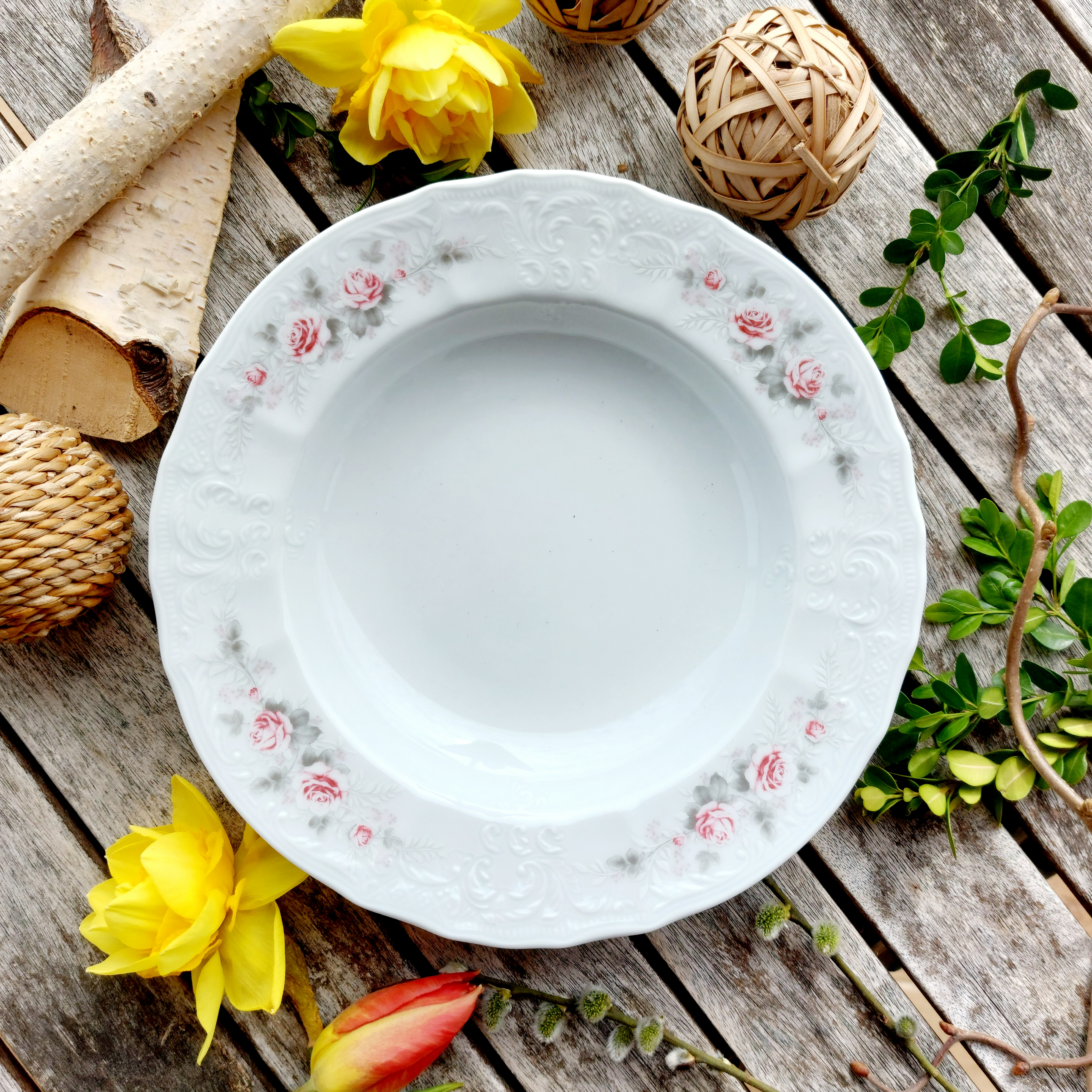 BERNADOTTE talíř hluboký 23 cm, růže, Thun 1794