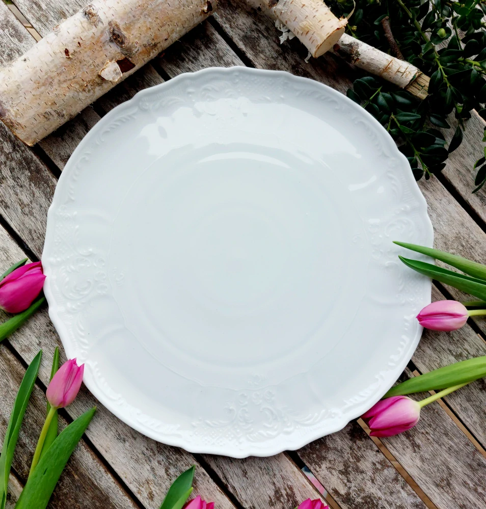 Elegantní plochý talíř z bílého porcelánu na servírování dortu od největšího českého výrobce porcelánu Thun 1794. Oceníte hlavně při každé rodinné oslavě. Hodí se i na jiné zákusky nebo třeba chlebíčky. Kolekce Bernadotte je snad nejznámější a nejpopulárnější reliéfní porcelánový soubor, který se v Lesově vyrábí od 60tých let 20. století. Důkazem je, že je kolekce velmi rozsáhlá a její sortiment se neustále rozšiřuje dle požadavků trhu.