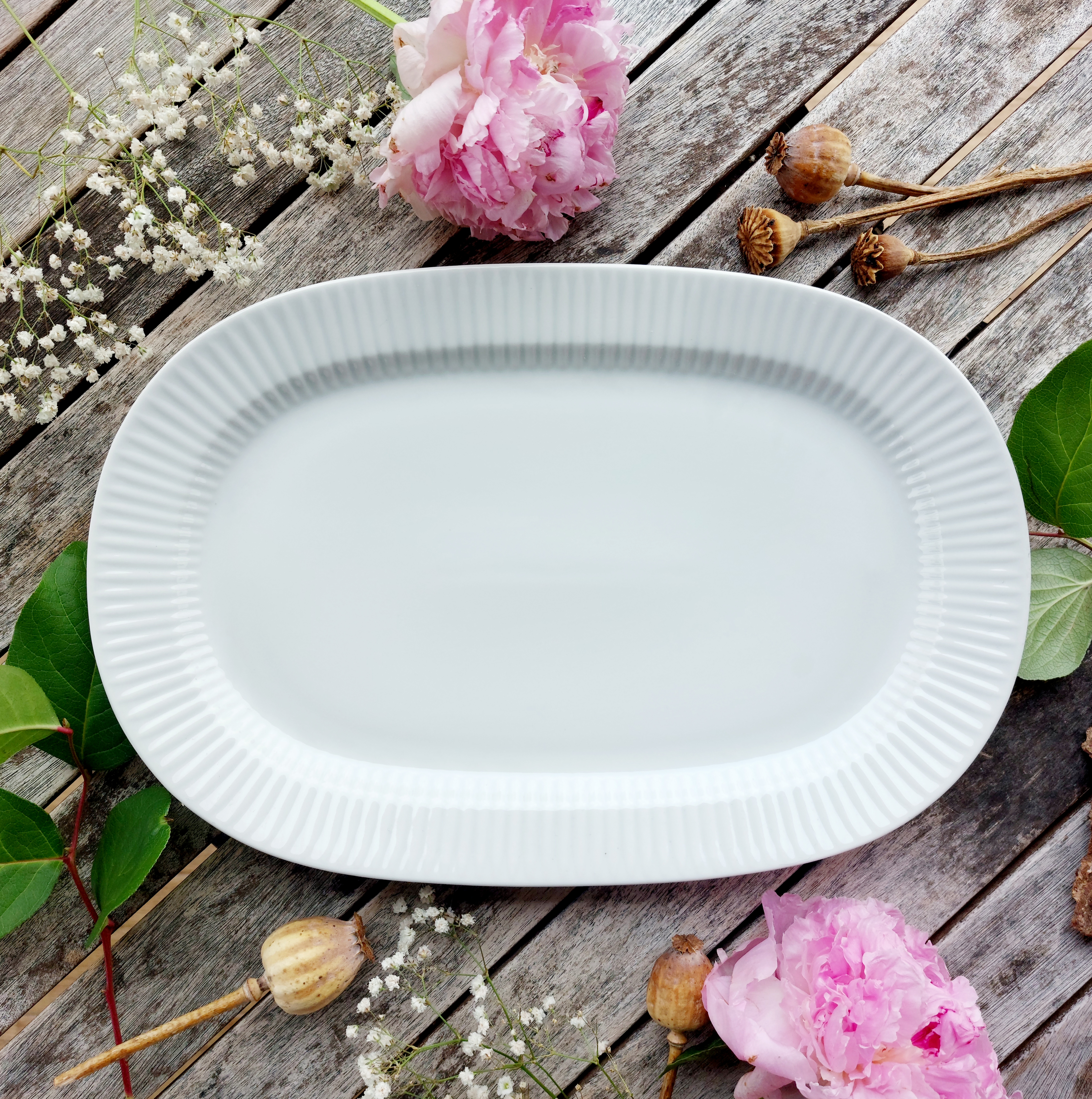 Velká oválná mísa - podnos na servírování pochoutek z bílého porcelánu od našeho největšího výrobce Thun 1794. Nadčasový design vhodný do každého moderního bytu. Tento výrobek nemá spodní značku výrobce.
